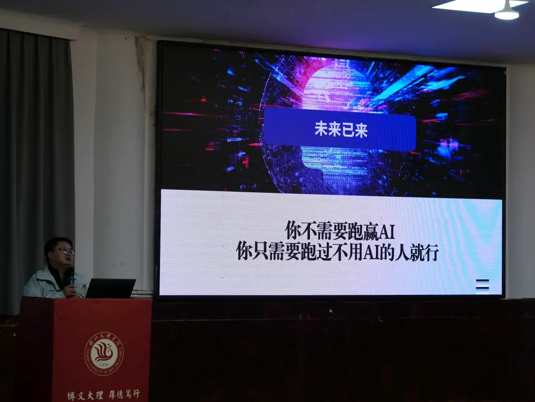谈及“人工智能 +” 时代,侯翔结合行业趋势与师生实际分析,习近平总书记指出 “加快发展新一代人工智能是事关我国能否抓住新一轮科技革命和产业变革机遇的战略问题”。我国自 2013 年起持续推进人工智能发展,“人工智能” 先后写入 “十三五” 规划纲要、《新一代人工智能发展规划》发布,2023 年 ChatGPT 等大模型问世推动技术迭代加速,从通用模型向垂直行业模型演进。他以人工智能工具赋能办公场景为例,同时指出部分学生办公软件操作能力不足、劳动力市场 “极化”、智能应用能力差距扩大的现状,强调 “塔石精神” 是学院人工智能创新与人才培养的 “动力引擎”。