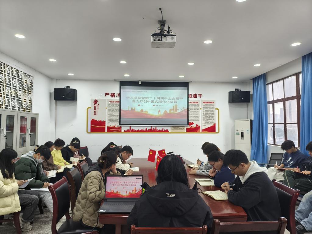 为深入学习贯彻党的二十届四中全会精神,推动理论学习往深里走、往实里走,促进理论认知与实践探索深度融合,2025年11月7日中午12点20分,我院学生党支部在二教楼606会议室成功举办党课暨十一月主题党日活动。活动由支部书记李林主持,全体党员及预备党员同志参加。