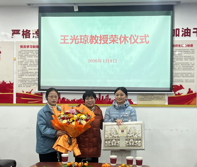 2026年1月9日,人工智能与大数据学院为王光琼教授举办了一场温馨庄重的荣休仪式,学院党政领导、师生代表齐聚,共同向这位为学院发展倾注三十五载心血的教授表达敬意与祝福。