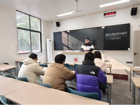 随后,谭力川老师结合以往假期安全案例,从用电安全、消防安全、出行安全、财产安全、网络安全五个维度开展安全教育。讲解违规使用电器的安全隐患、火灾逃生的正确流程,提醒学生外出时需锁好门窗、保管好个人物品,避免前往人员密集或安全隐患较高的场所;同时强调理性使用网络,不传播不实信息、不参与网络诈骗,遇到紧急情况第一时间联系辅导员或公寓管理员。另外,会上对学院放假期间老师值班安排进行了说明,明确假期值班老师联系方式与沟通机制,确保留校学生遇到问题能及时得到解决。