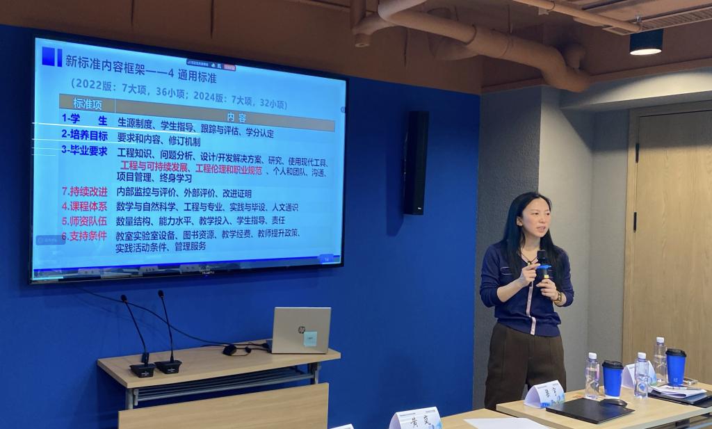培训期间,黄岚教授以 “工程教育认证新标准下的专业建设与质量提升” 为主题作报告,系统解读工程教育专业认证全流程与新认证标准核心内涵。报告梳理了申请、考查、状态保持等关键阶段的核心要求与材料规范,深入剖析新标准新增“计算”“计算思维” 等术语定义、强化思政引领与可持续发展要求的核心变化,明确学生、培养目标、毕业要求等7大通用标准的具体实施方向。同时,强调专业建设需紧扣 “主线、底线、基线”,规范课程大纲、考核评价材料等核心教学资源的建设要求,明确学校、学院、专业的协同分工与实施逻辑,为高校精准适配新标准、系统推进专业建设、全面提升人才培养质量提供了实操指引。