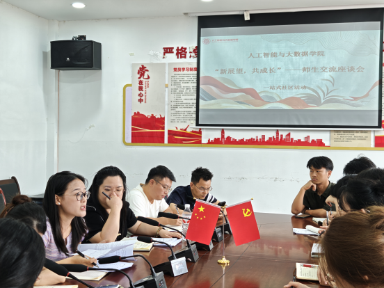 座谈会伊始,学院辅导员李林老师作开场发言。他以“成长”为关键词,结合学院近年发展成就与学生成长案例,鼓励师生以开放心态迎接新挑战:“人工智能与大数据领域日新月异,我们的学生既要脚踏实地掌握核心技术,也要抬头看路培养创新思维。针对迎新工作,李林老师特别强调:“新生是学院的‘新鲜血液’,我们要用专业与温度帮助他们完成从‘高中生’到‘大学生’的角色转变,让家长放心、学生安心。”